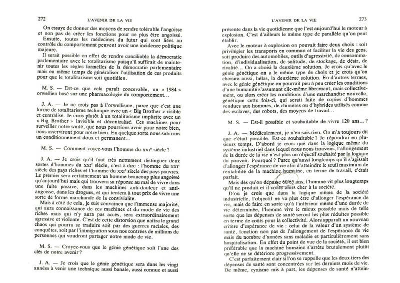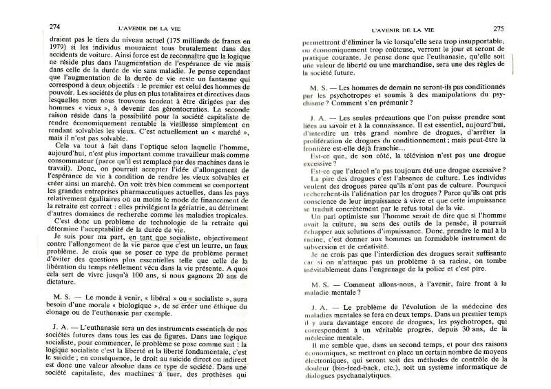 Le texte qui précède me semble presque totalement inventé autour de la phrase de la page 273 selon laquelle « Mais dès qu’on dépasse 60/65 ans, l’homme vit plus longtemps qu’il ne produit et il coûte alors cher à la société. »