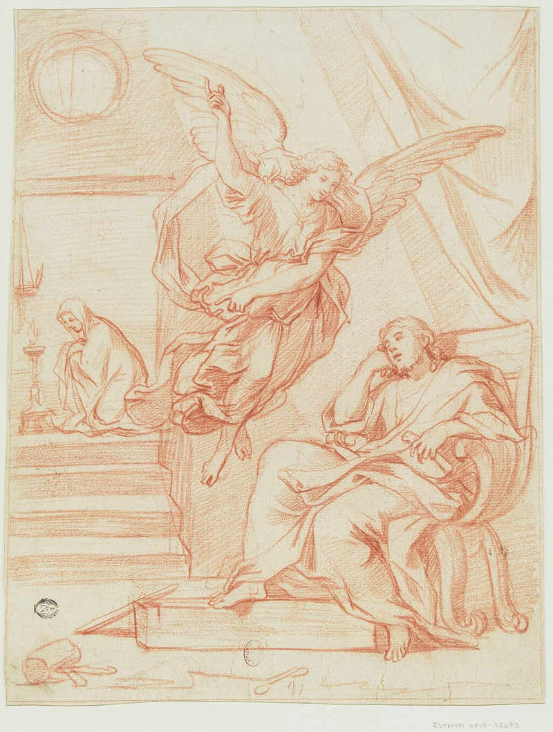 L’ange apparaît à Joseph endormi, la Vierge à l’arrière-plan – dessin – atelier de Charles Le Brun (1619-1690) ou copie d’après ?