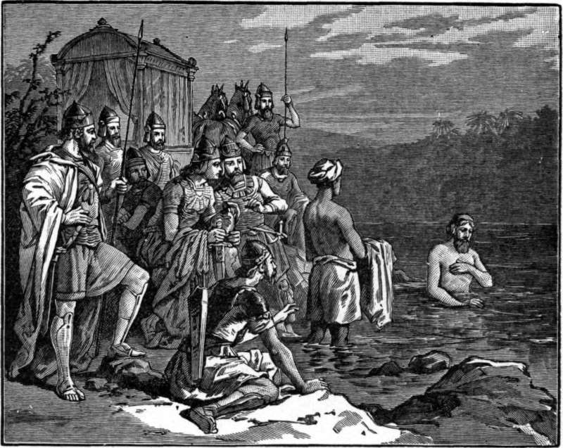 « Naaman dans le Jourdain » – Images bibliques avec de brèves descriptions par Charles Foster, publié en 1897, Philadelphie, PA.